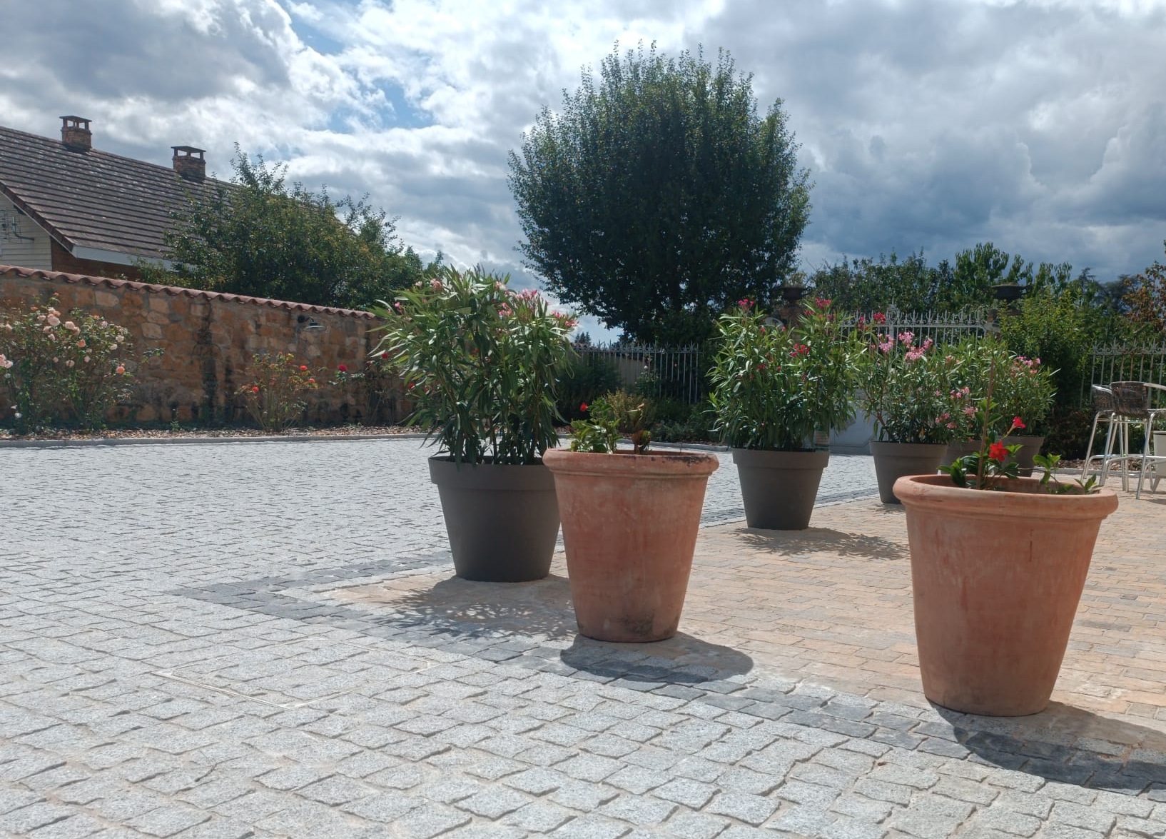 Arrosage automatique, gestion des eaux pluviales (caniveaux, puits perdus).