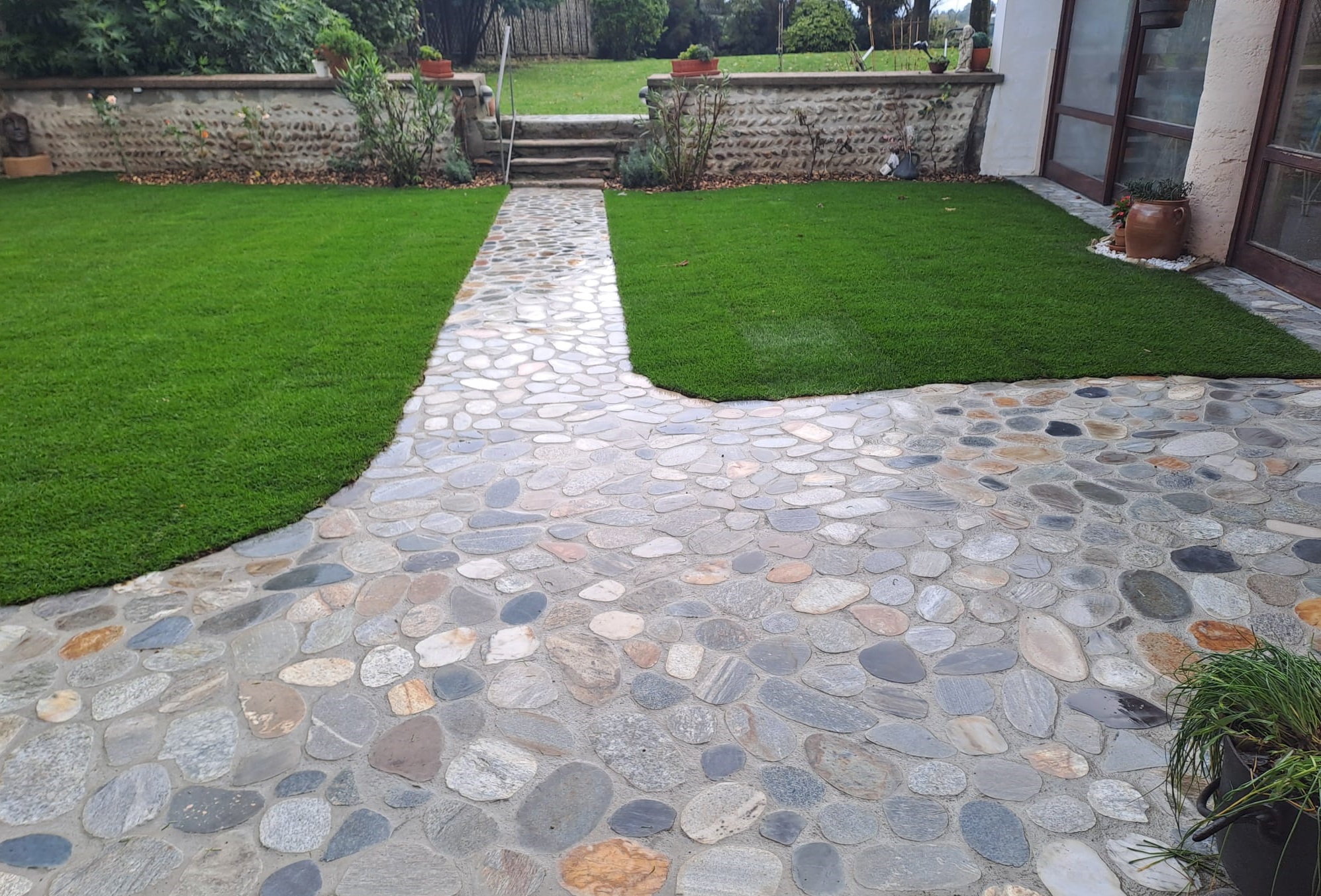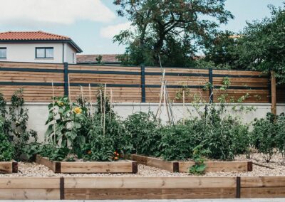 Terrains de pétanque, bacs potagers, pas japonais, bassins décoratifs.
